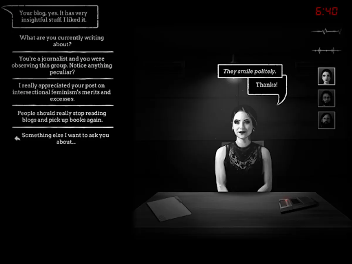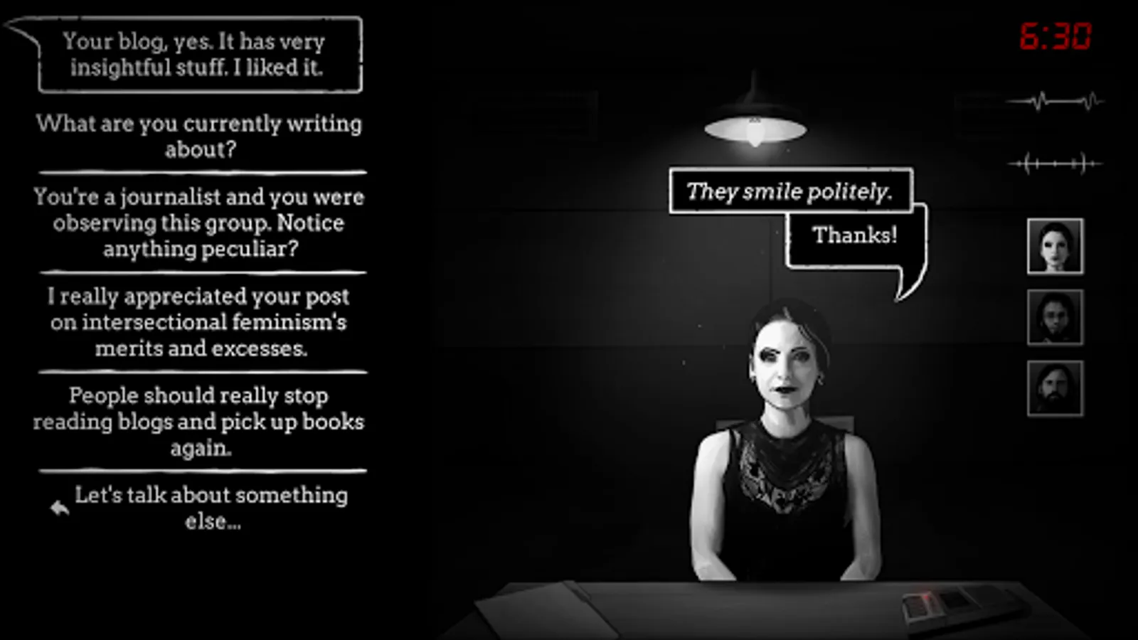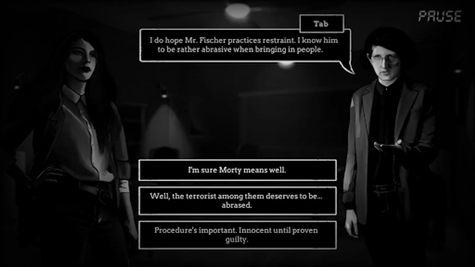 Interrogation: Deceived is a narratively immersive convo-puzzle game that challenges common preconceptions about highly relevant contemporary subjects like terrorism, police brutality and the power imbalances between citizens, the state and large corporations. The game follows in the footsteps of games like "This War of Mine", "Papers Please", "This is the Police" and "Orwell" in that it tries to raise important moral, ideological and practical questions in the minds of the players.