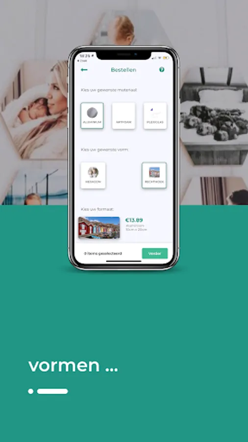 With the MixYourPix app you can easily order your own photo collection on the wall. This can be done on different materials, shapes and sizes.
