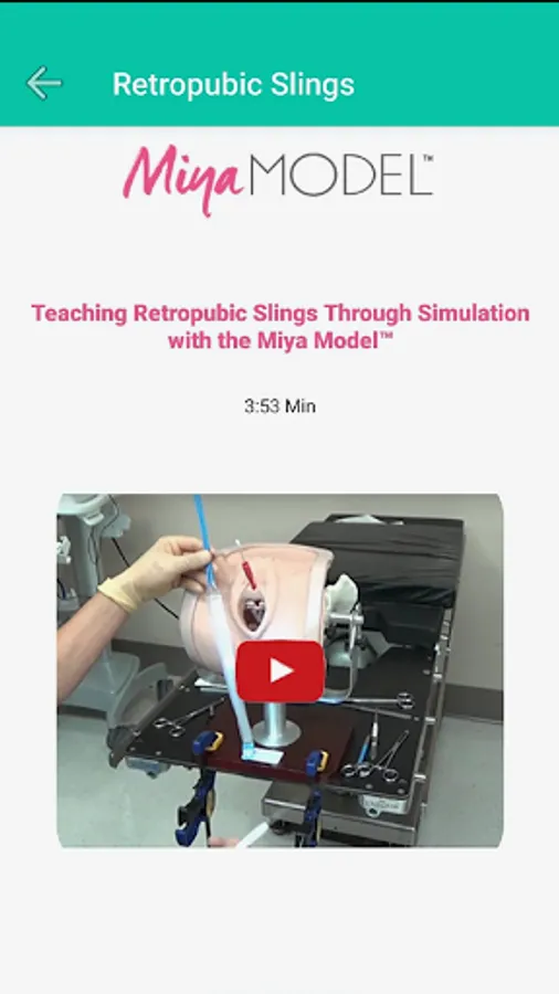 The Miya Model™ app is a support tool for the 3D Miya Model™, the premier pelvic surgery training model. You will find videos explaining how to use the model with the technical steps needed to perform vaginal hysterectomy, retropubic slings, transobturator slings, and anterior and posterior colporrhaphy. The Miya Model™ app contains Assessment questionnaires for the sea procedures, all of them adapted from ACOG Simulations Consortium. It also contains an evaluation of the 3D Miya Model™ to help us to improve the quality of the pelvic surgery training.