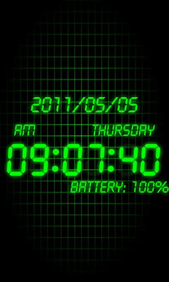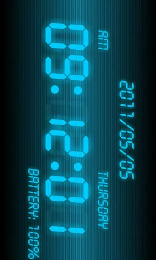 Digital clock app is loved in the world! Digital table clock app start / end in conjunction with automatic connection / disconnection of the main smartphone battery charging "Battery Clock β" is. Displayed horizontally but also vertically nicely. Watch the color of course, also possible to change the display size. It also displays the battery level. The following settings are available. Contraction / expansion of the size and Clock, charging begins automatically when you start switching the hour / 24 moves up and down the entire 12 hours displayed automatically when you exit without removing the charge, not to sleep during application startup , digital does not change the color of (green, yellow, blue, red, white, black, gray, pink, light blue), change the background color (white, black, gray) filters have two features in the background (tile, horizontal) • Filter change colors (green, yellow, blue, red, white, black, gray, pink, light blue)
