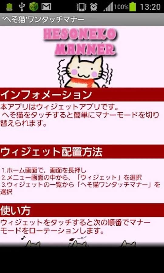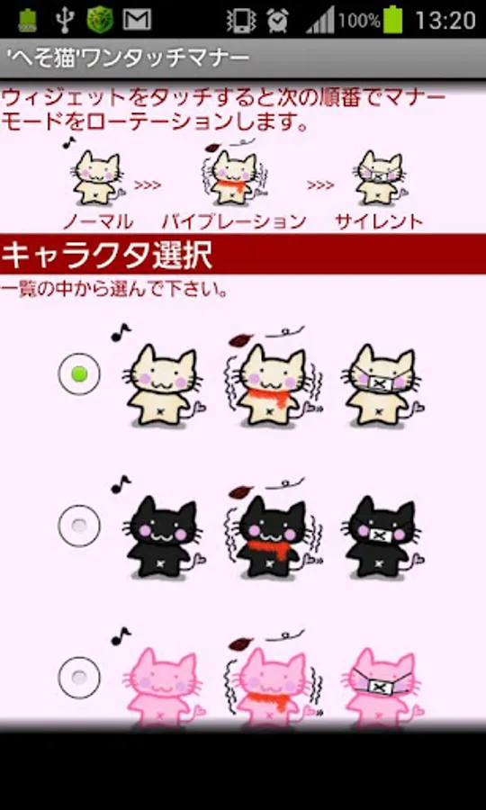 Select "HesoNeko One Touch manners" from the list of three. Widgets