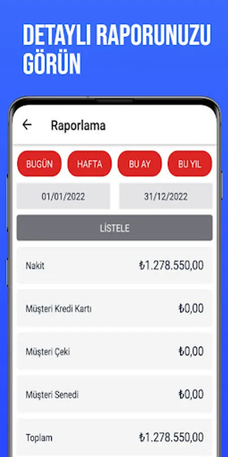 • Reporting of daily, weekly, monthly, yearly orders, sales and collections between two dates.