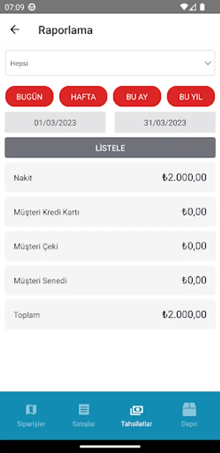 • Reporting of daily, weekly, monthly, yearly orders, sales and collections between two dates.