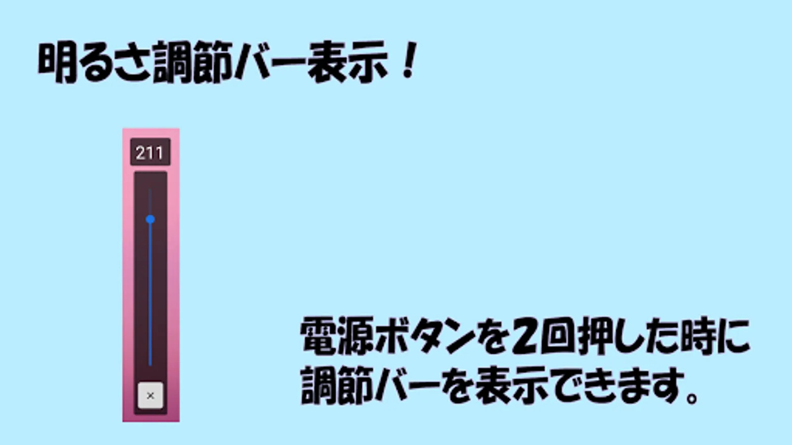 You can display the brightness adjustment bar when you press the power button twice or when you press and hold the home button.