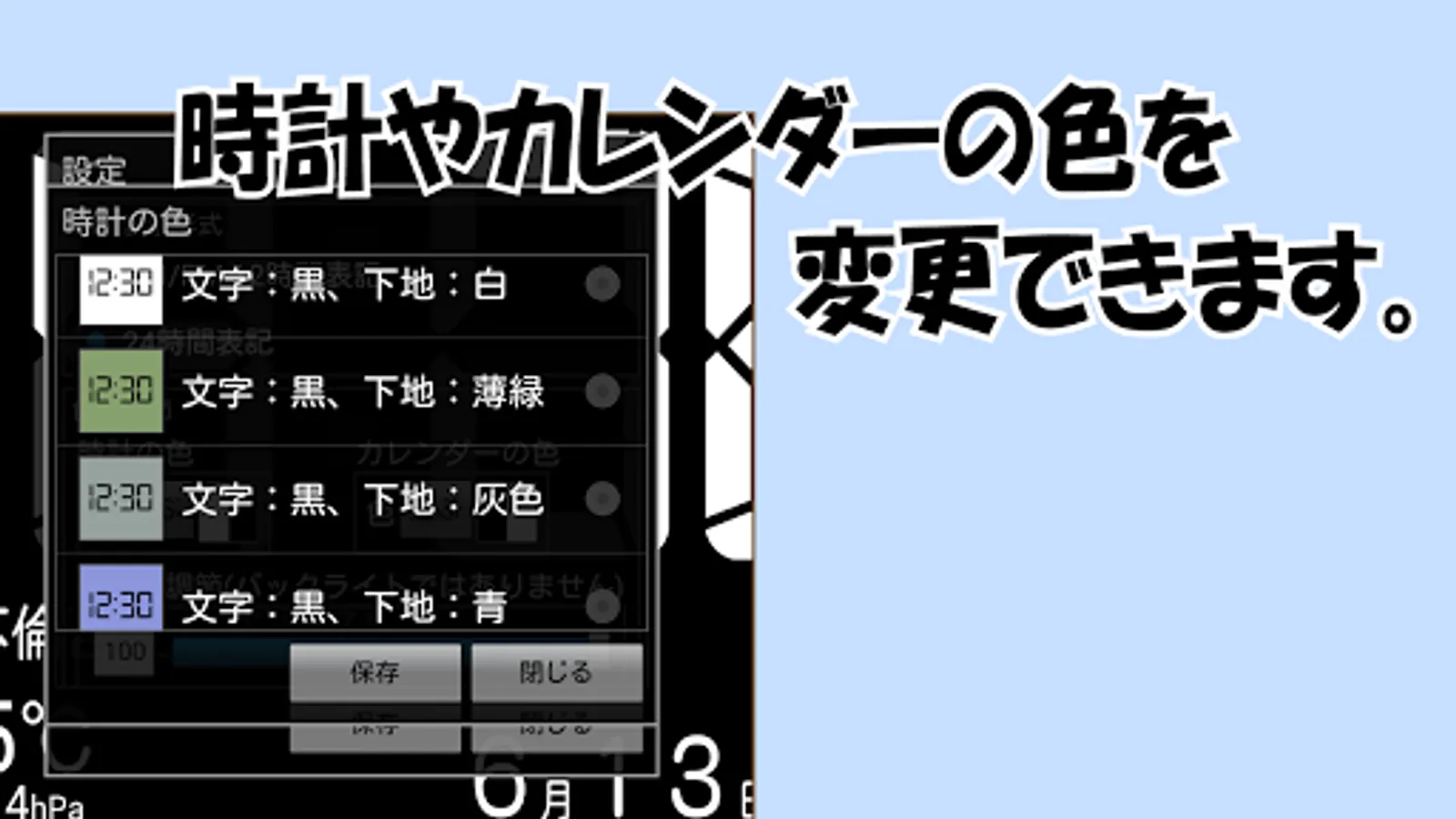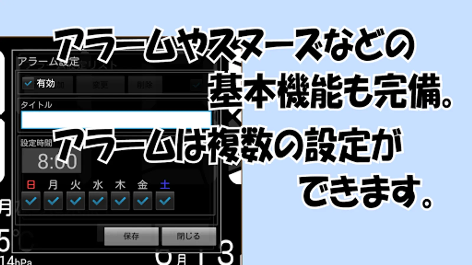 ・Calendar function (Holidays and anniversaries can be displayed, Google calendar can be displayed)