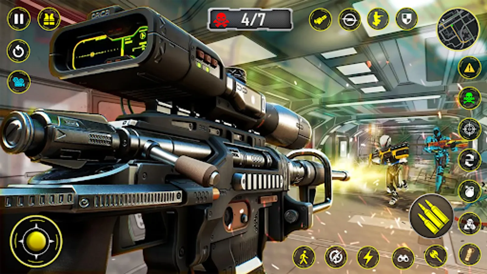 Join the modern battle of futuristic robots in sniper games 3d and counter robot shooting games. Play against the fps shooting battle robots using the mech weapons and survive the counter attack of alien robots in deadly crossfire. Fps shooting games are introduced in unique design of counter terrorist shooting in real world with the sniper robot on counter terrorist strike duty. The concept of this counter terrorist robot shooting game was originated from the idea of providing our users with counter terrorist games, robot shooting games, critical shooting games and fps games at one place. We happily announce that we succeeded in bringing up a great blend of counter shooting games & robot gun games involving the ambience of scifi games as well. Get ready for a critical counter attack on robotic enemy forces to stand victorious in futuristic robot game by defeating the counter shooting robots in fps shooter games, counter terrorist games and fps robot games. Become fps shooter in fps shooting games, real robot shooting games of counter terrorist games. Fasten your belts to jump into gun shooting strike and futuristic battlefield amidst the real robot strike and fps shooting fury.