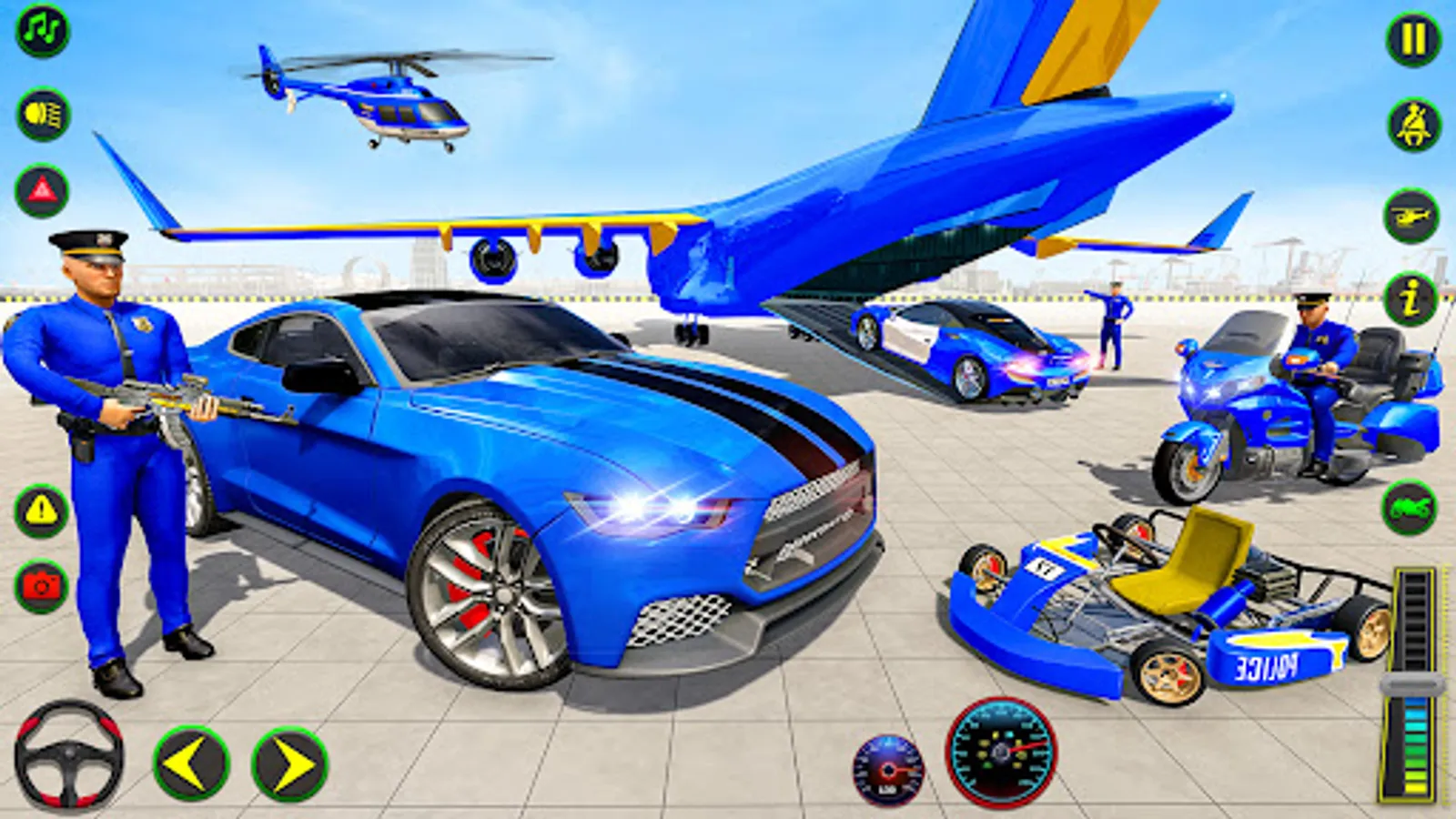 You might have played many police airplane games but this police plane game comes with different set of challenges and exciting missions. Combining the strategy involved in police transport games with thrills of police aeroplane games, this airplane transporter game lets to take charge of the entire police squad movement. Let’s you be the front for police moto transport department of police car games. You will get to ride and enjoy a variety of vehicles including police motorcycle, police bike, cars, aeroplanes and police transporter truck, all in one game. You can fly police car transporter plane with to different airports. All this makes it one a different police games. If this excites you and you want to be a part of police force, be prepared to complete challenges in police plane transporter game.