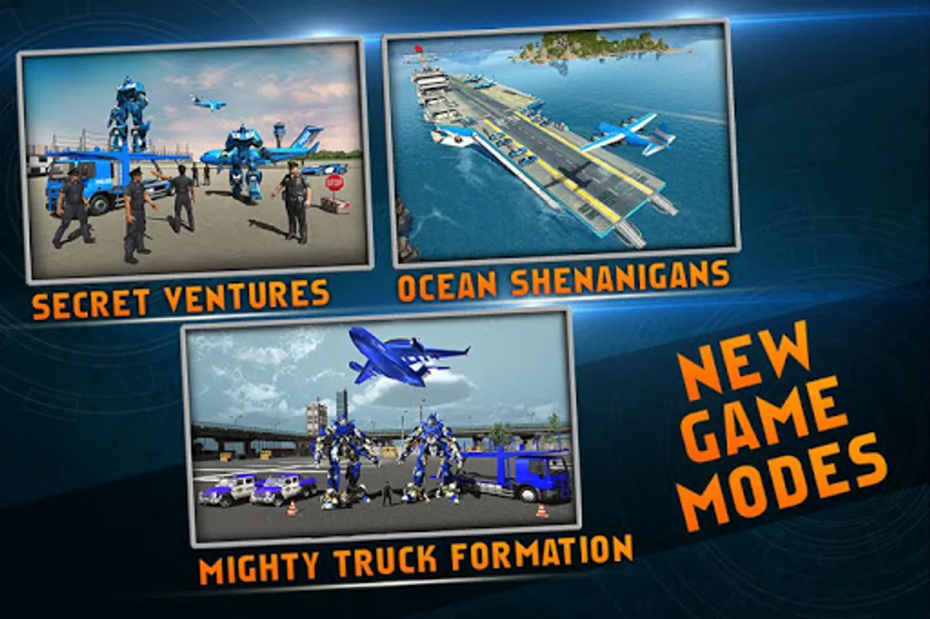You might have played many police transport games but this new robot transport game comes with a different set of challenges. Police robot car game is a brand new edition in category of police robot games where you will be able to perform police plane transport missions. This robot car game is for all those who want to be a police airplane transporter and a robot transformation expert all at the same time. NYPD police and LAPD has collaborated a secret police mission to transform robot car into police robot transforming bots to root out crime from their cities. You will get to drive modern police transport truck, car, bike and police aeroplane all-in-one game for NY police. This, combined with the strategy involved in car transporter games and technique of transforming robot games makes this robot simulator entertaining. So be ready to transport robot car and bike in police truck to airport and then fly cargo plane as an airplane pilot to the secret island where NYPD police research center is located. The cars & bikes will transform into transforming robots not seen in any other robot police games. Later, transport robot transforming bots in police plane for crime fighting with NYPD. So get into action with fast police car driving and robot shooting missions of police car games to enjoy unparalleled entertainment. Have fun with engaging story missions of plane games in this robot car transporter game.