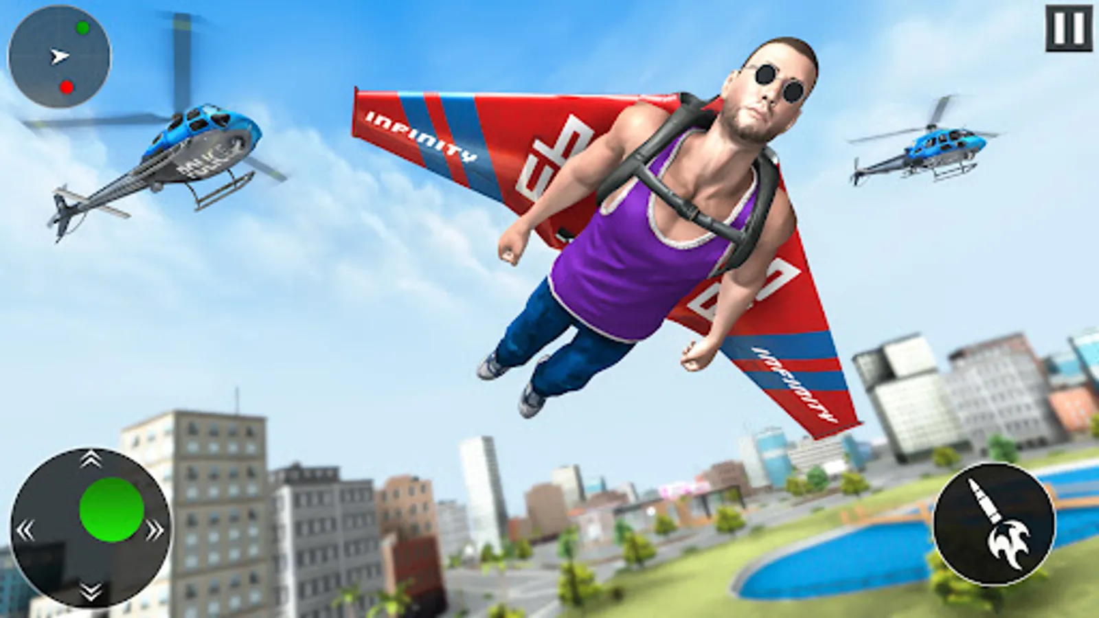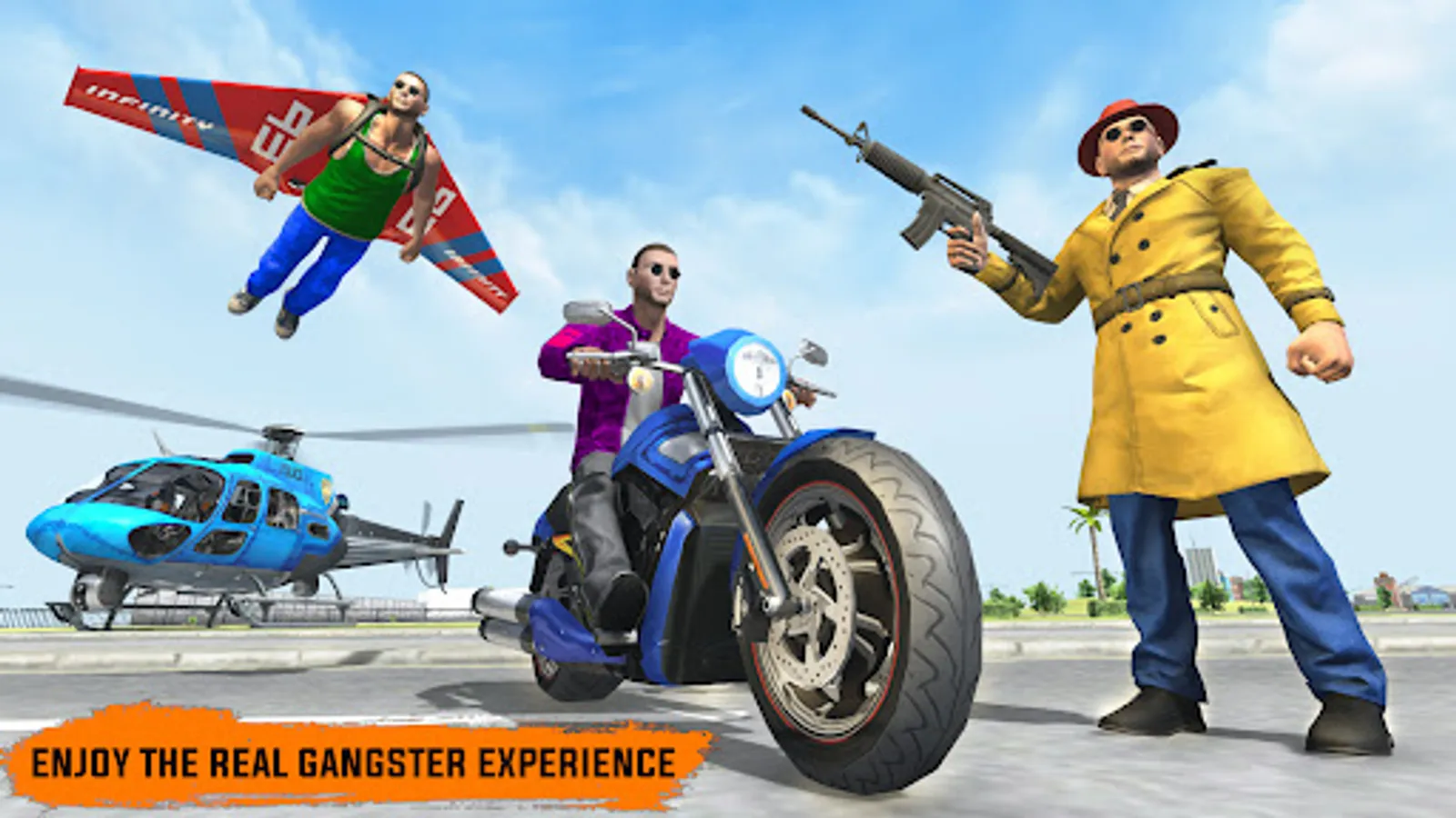 A new recruit to a notorious crime gang wants to establish his name as a real gangster of gangster crime city 2021 in open world crime games and gangster games. He is enthusiastic gun shooter and jetpack rider who sets his destination to become the real gangster in gangster crime simulator and jetpack crime city real gangster games. There are number of crime gangs operating in gangster crime city, everyone fighting to rule the crime streets. Amidst the heavy fire exchange between rival gangs to show their dominance there is a new ruler of crime streets who is emerging as real gangster of jetpack crime simulator of gangster crime city games and car driving games. His day passes playing with deadly weapons, car driving and ammo and the nights in the bar. He enjoys the freedom of being the lone gangster, elite third person shooter, commits bank robbery with no fear, prison escape breaking the jail is not a big deal for him, he attacks the police stations and snatches bikes & drives cars and takes everything as a fun. Apart from that he is a fast car driver and jetpack flying shooter in gangster crime city.