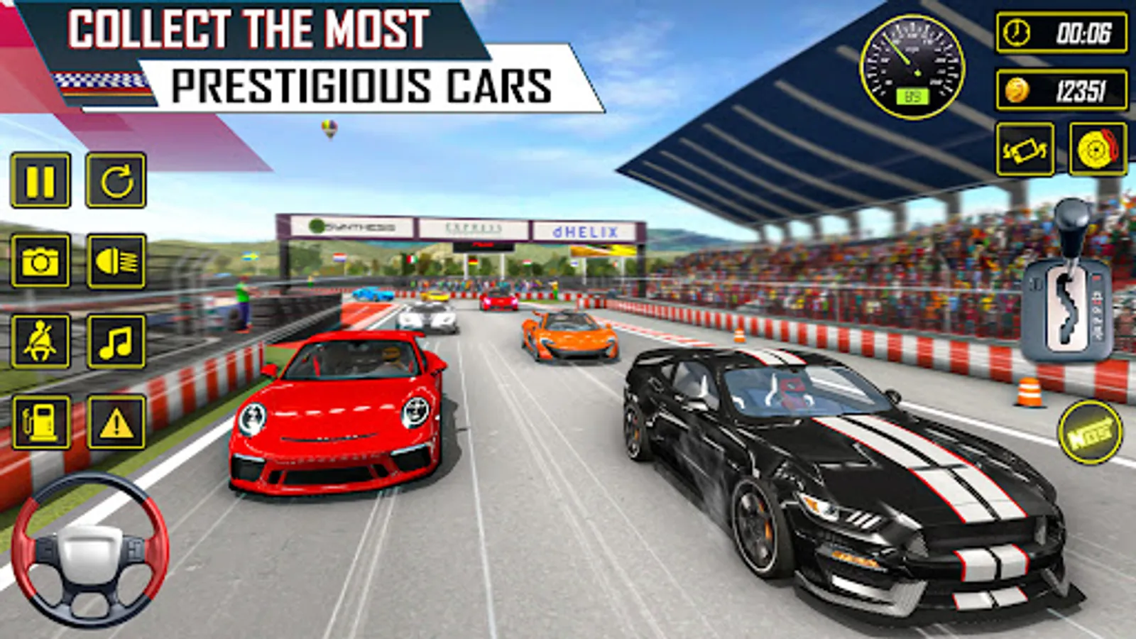In new car games, become a real player of this car racing game for the fast speed track racing. Car driving simulator provides the wide verity of sports cars and hyper cars consist of realistic drifting and nitrous oxide systems and a powerful engine positioned right behind the driver, intended to be used in competition at top speed racing events. So do not wait, just jump into the real car race game with challenging mission of car games. Enjoy the modern cars in this new car game on the play store that is available in the category of car games 2021. Now the Steering of motor car game is in your hand, check the fuel, tires, steering wheel, and breaks in this racing car games for the best performance. Compete with opponents and win the championship of the car race game.