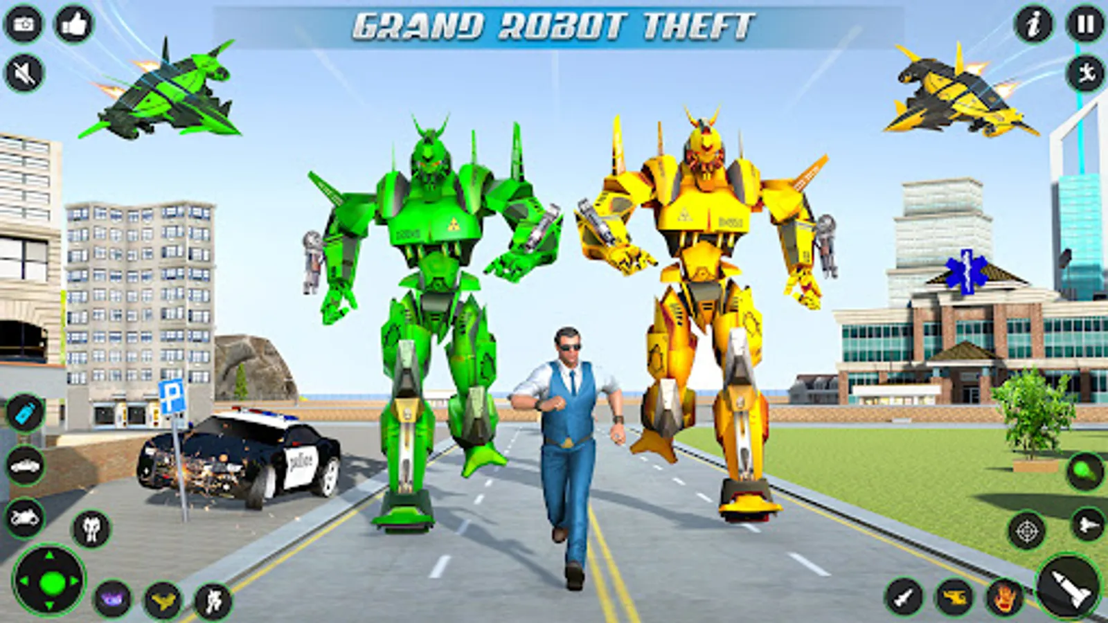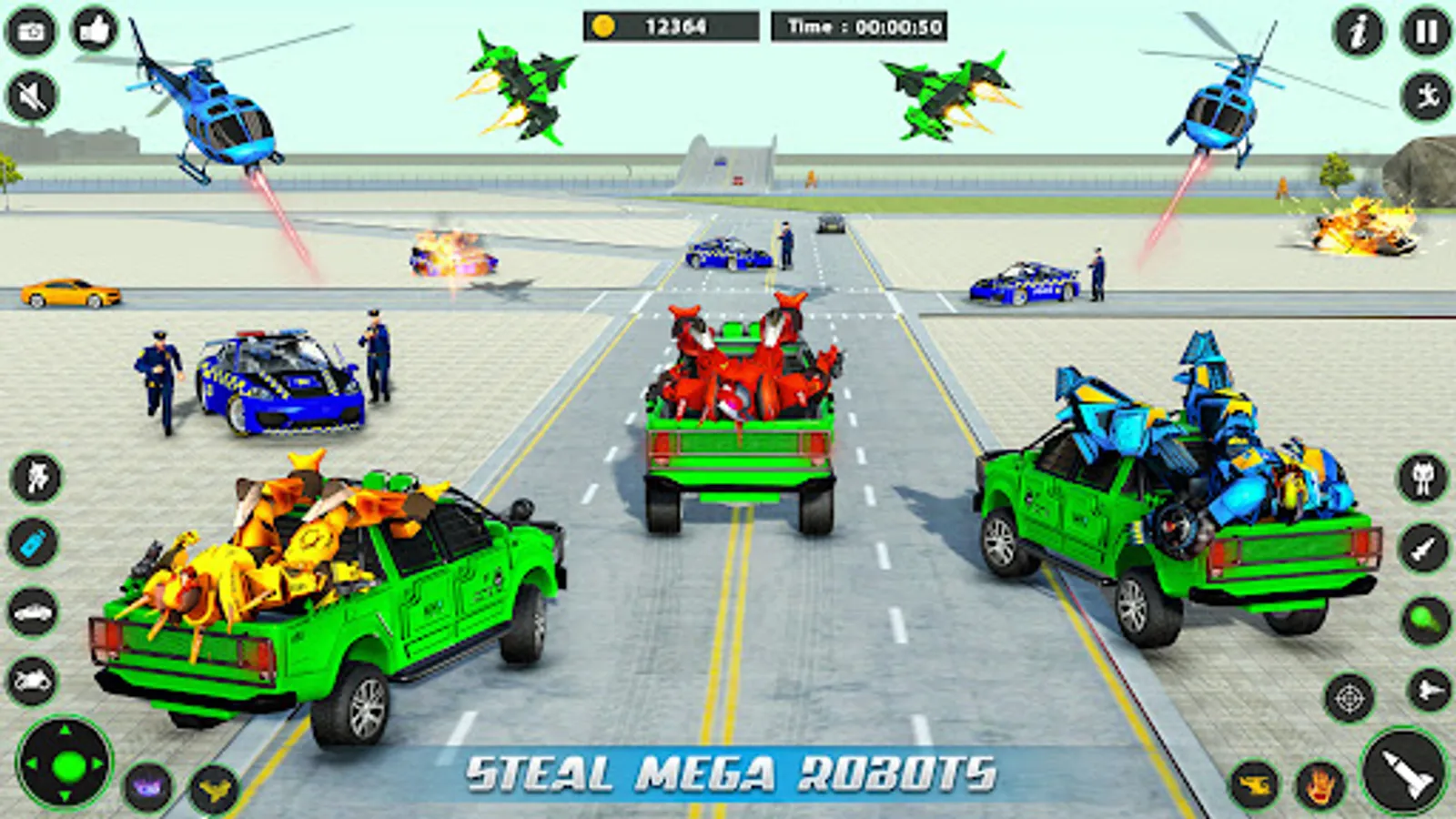 Robot transform game is specifically designed for the lovers of robot transforming games and robot fighting games for real robot fight. To provide them best user experience, diverse features of robot games like robot shooting games, robot war games with car robot transforming games are merged into one package of robot game. Thrilling adventure of robot car games starts from the beginning as you steal the multi transforming robots from military research labs. A US secret agent sets on the high significance mission of robot shooting games and robot car games. I bet you have never played such an awesome robot fight & robot theft game in any of robot games & car robot war games. Accept the highly dangerous and risky robot game job! Steal mech warrior futuristic robots and future battle machines having the multi transforming capability in exciting blend of army robot games, robot car game & mech robot shooting games, making it qualify for best robot game category. This robot car simulator is latest on of the transforming robot car games which encloses ultimate simulation in army tank transporter plane games, plane driving simulator, robot shooting games with tank robot stealing games.
