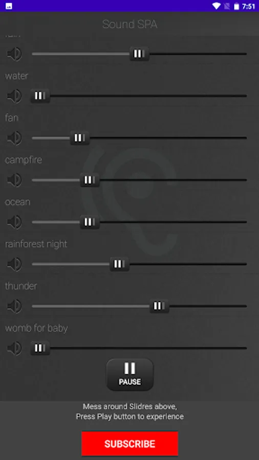 Choose any combination of white noise and adjust each track volume by your own favorite to create a non-disturbance environment to help you or baby falling asleep with ease or stay focus when study.