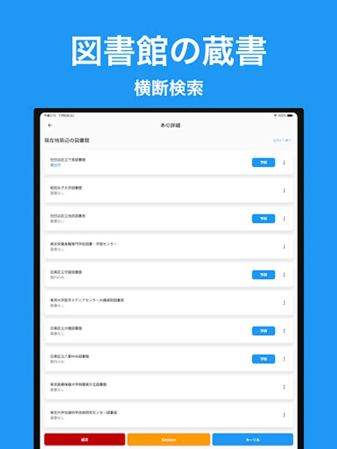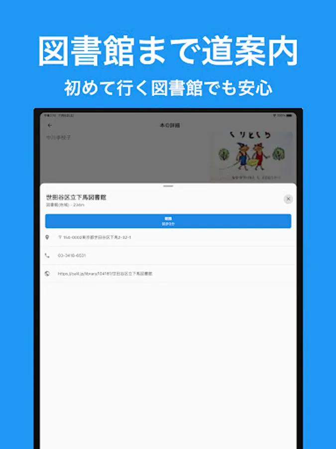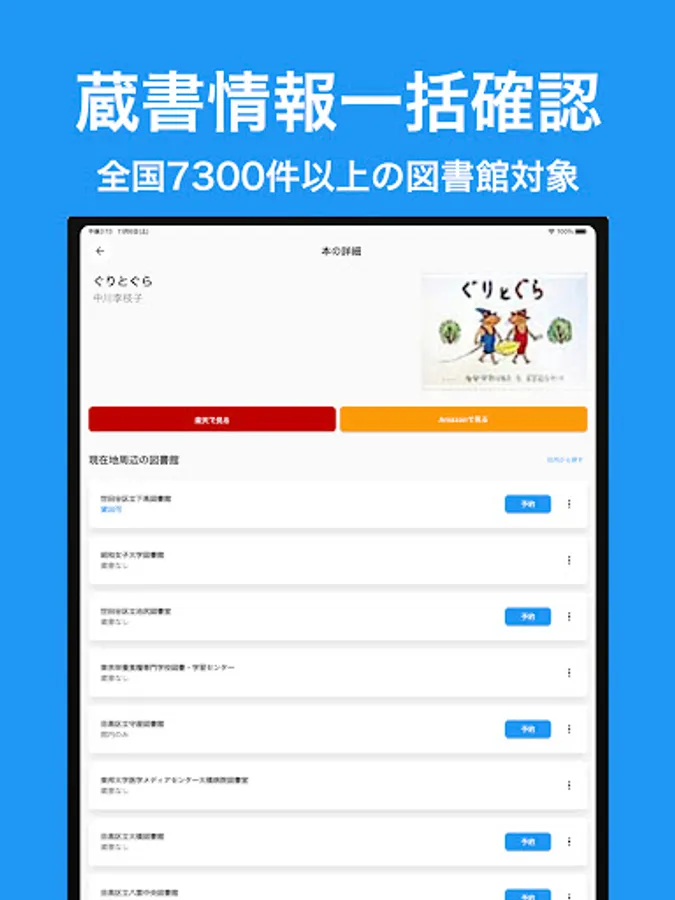 You can cross-search the lending status from libraries near the specified address. You can also find it at your workplace or in the library near your destination.