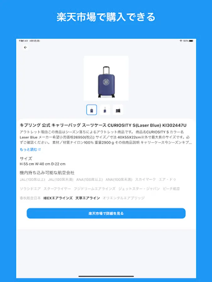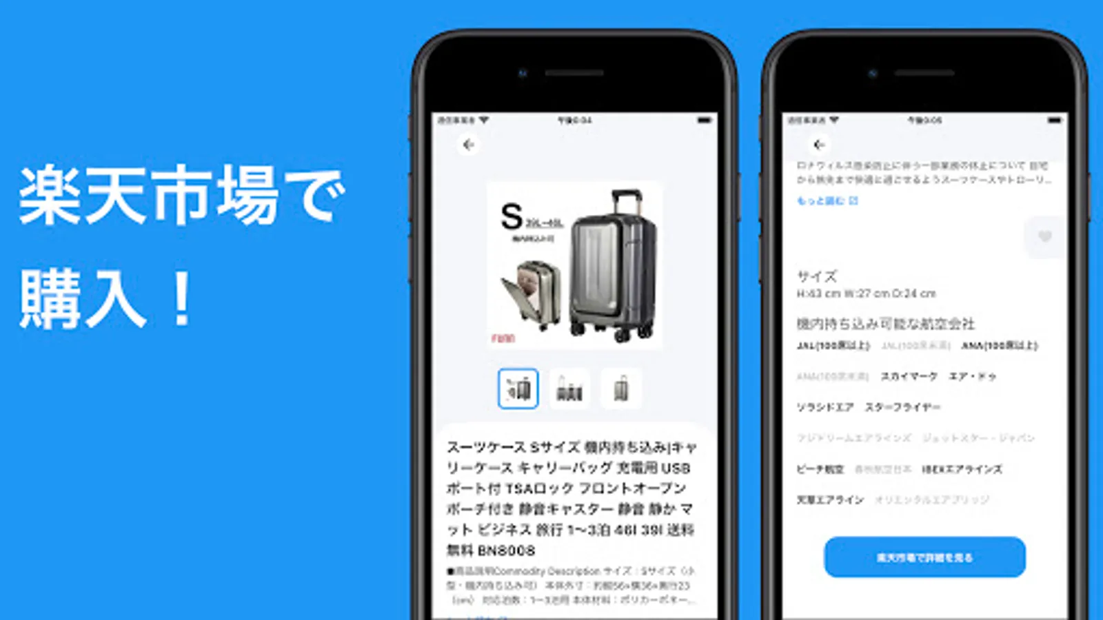 This app is for the purpose of searching for carry-on cases that can be carried on board at Rakuten Ichiba.
