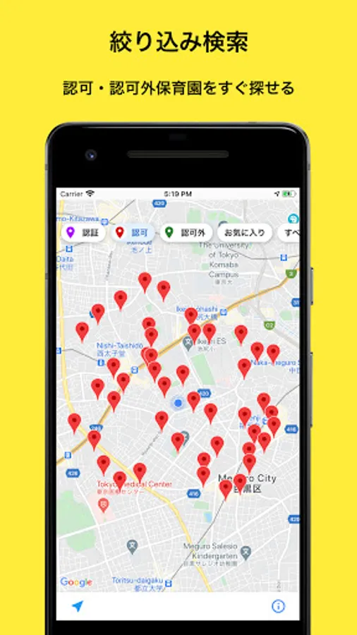 Immediately understand the certified / licensed / unlicensed nursery schools around your current location