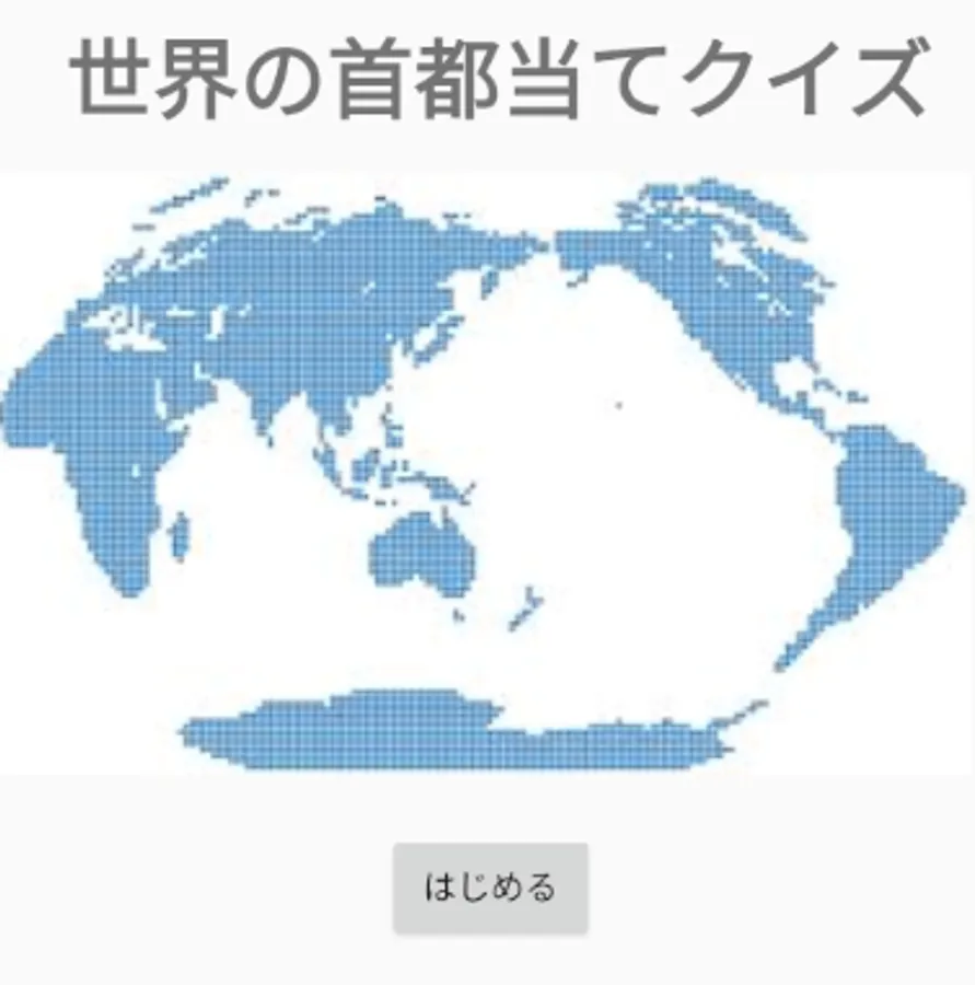 Two types of question format: country name to capital city or capital to country name, Asia / Oceania, Europe, Middle East, Africa, North America / Central America, South America You can play by selecting. You will be asked 5 questions at a time.