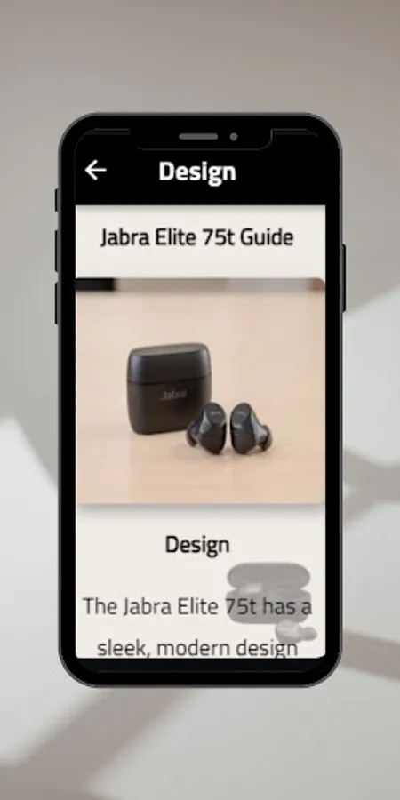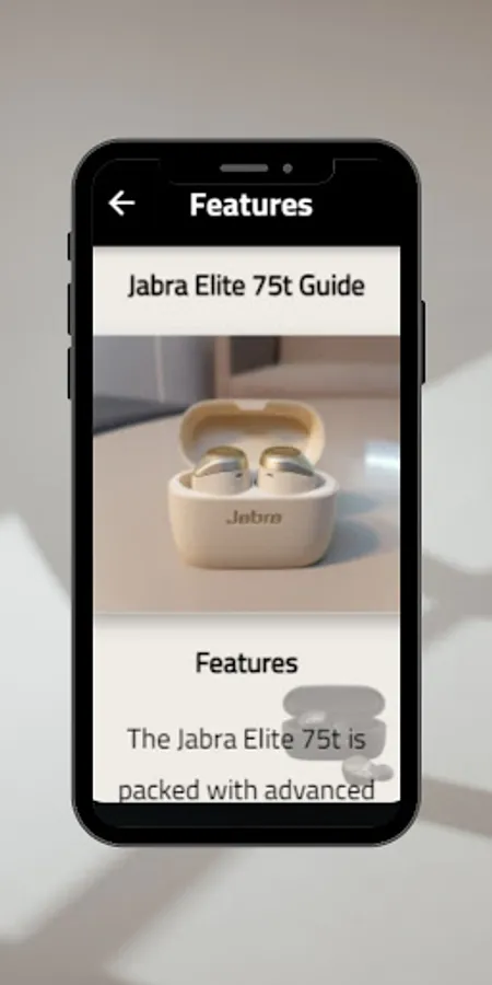 Our Jabra Elite 75t Guide app is packed with features that will help you get the most out of your earbuds, troubleshooting common issues, and customizing your settings to suit your preferences. Plus, you'll have access to a variety of features, including noise-cancellation, voice assistant support, and more, all designed to enhance your listening experience.