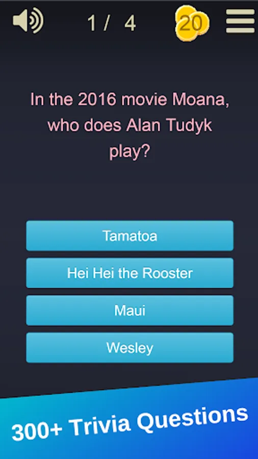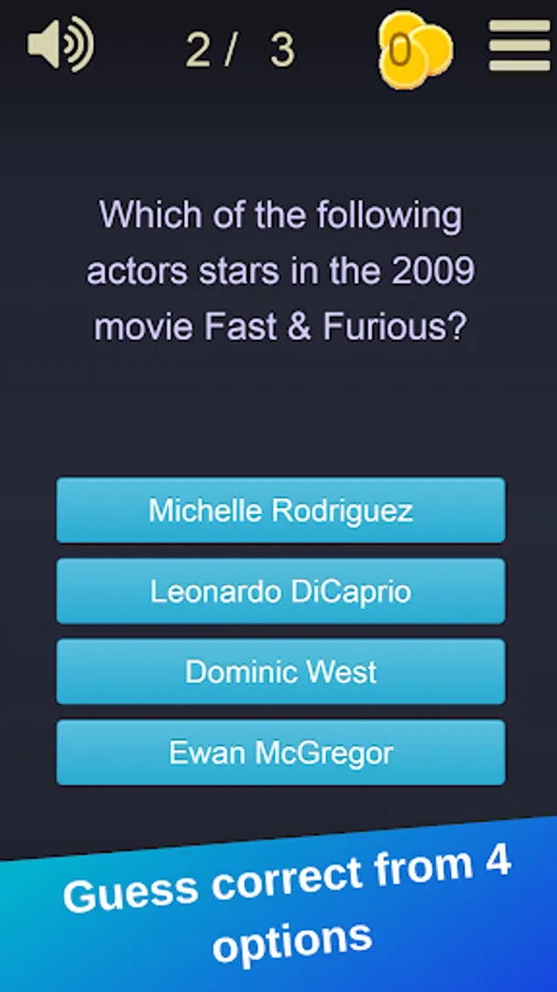 Playing is pretty simple: Trivia question will be asked with possible 4 options, You need to choose the correct one. Answer movie trivia questions and check your movie knowledge!