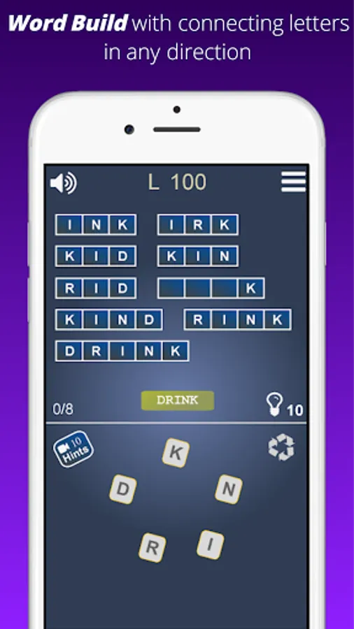 - Build the word with connecting letters in any direction to generate hidden word matches.