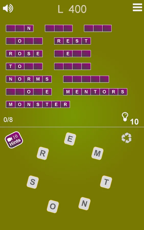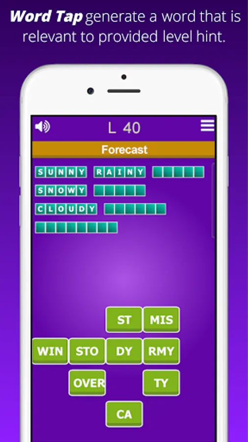 - Assemble the scrambled blocks of 2 to 4 letters to generate a word that is relevant to provided level hint.