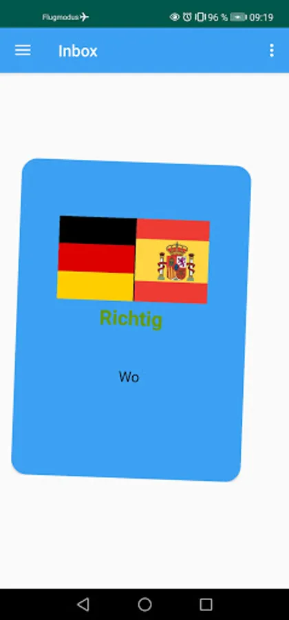 - Durch tippen auf die Karte wird die Lösung angezeigt. Die Wörter werden in der Zielsprache vorgelesen (Text-To-Speech)