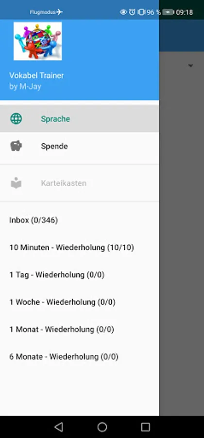 Der Vokabeltrainer verwendet ein Karteikastensystem, welches auf einem wissenschaftlich nachgewiesenen Wiederholungszyklus beruht. Gelingt es, die Wörter in den vorgegebenen Zyklen (10 Minuten, 1 Tag, 1 Woche, 1 Monat, 6 Monate) zu wiederholen, wird das Gelernte im Langzeitgedächtnis verankert.
