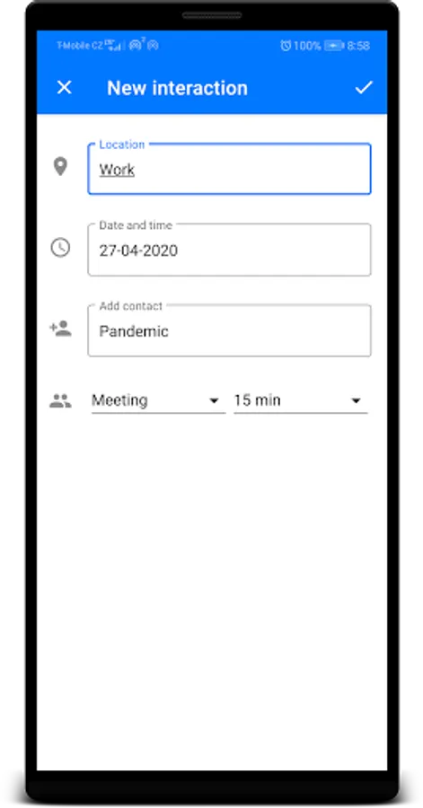 Usage of the application is as simple as can be. Do you have a meeting? Long or short? Just write it down as a new interaction and assign people you've met from your contacts.