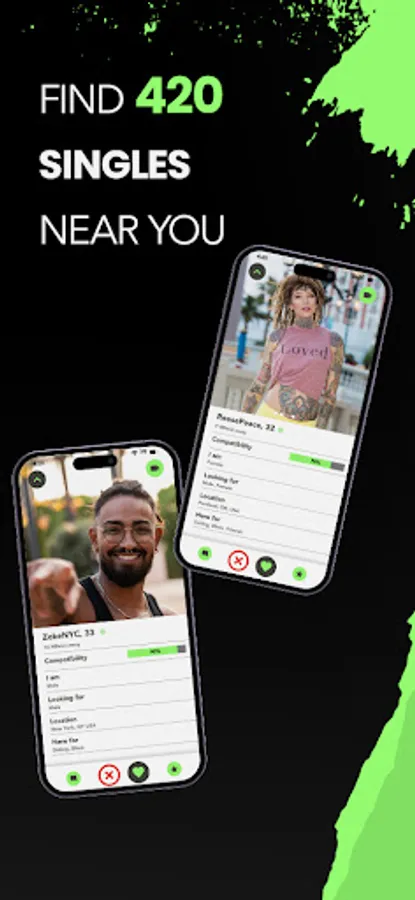 Browse, swipe, and connect with other cannabis friendly people in your city. It’s easy! Start by searching for people near you and then swipe right if you are feeling their vibe, or swipe left if you want to pass.