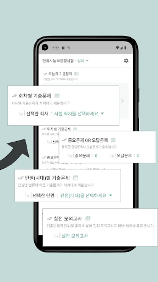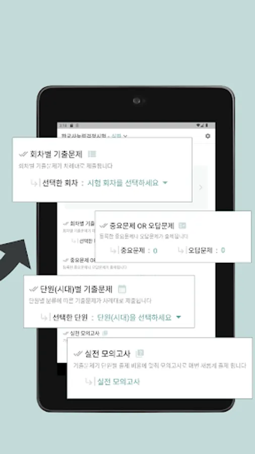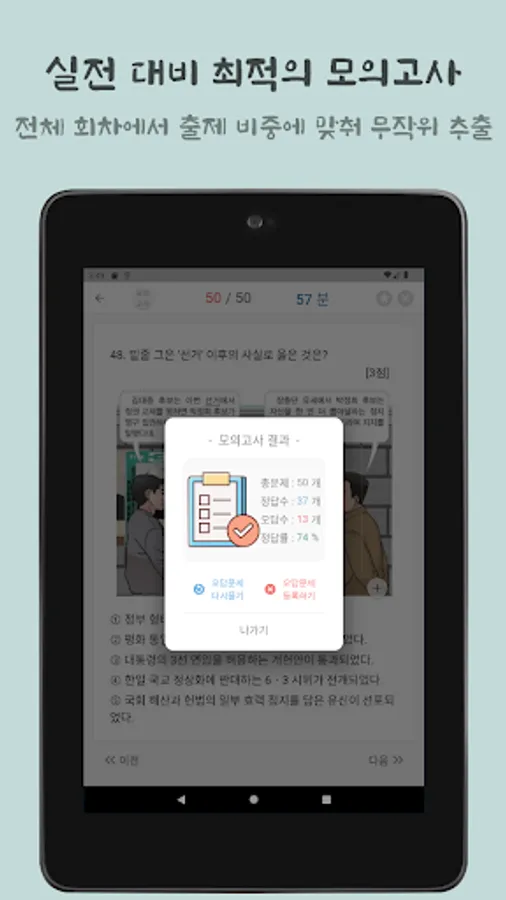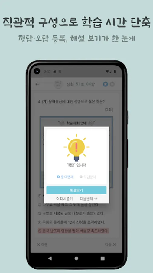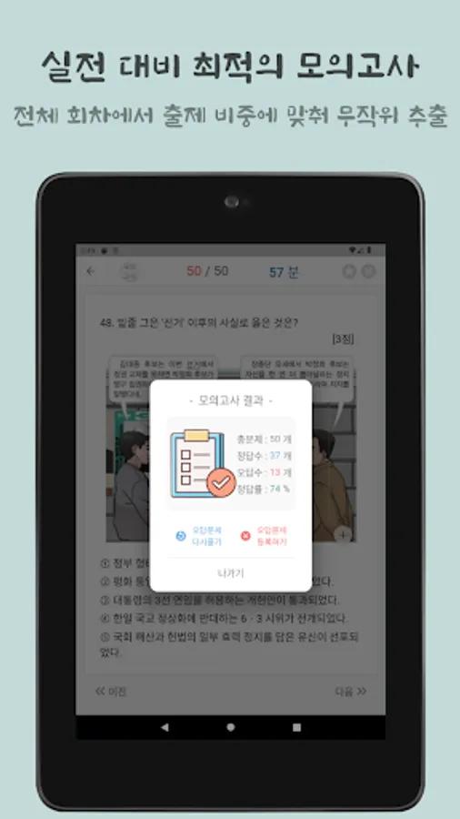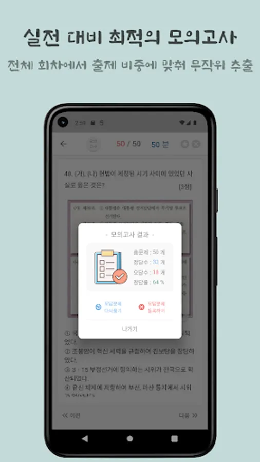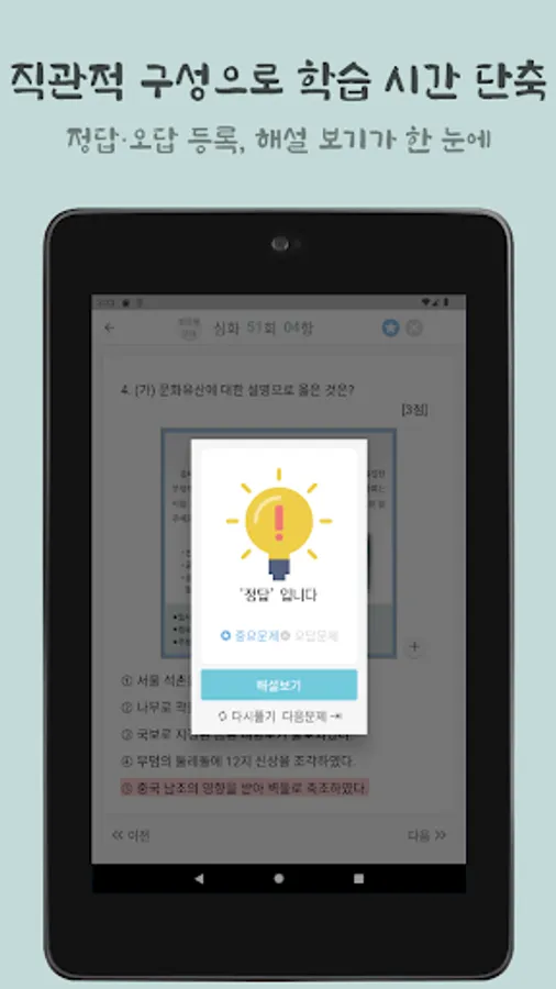 - Optimize learning efficiency by registering 'important questions' and 'wrong answer questions'.
