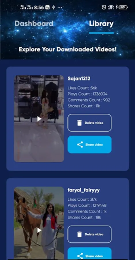* Share downloaded videos with your friends on social media.