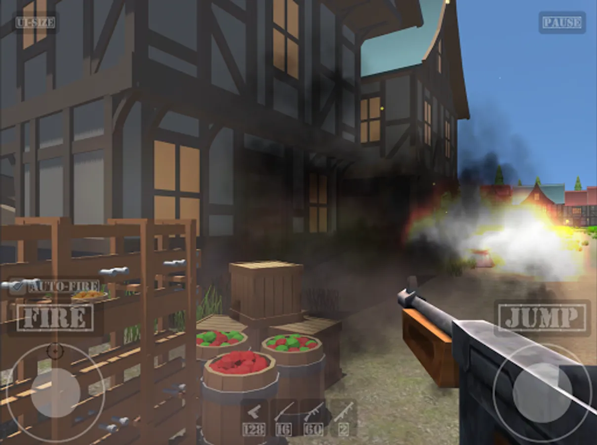 Just a simple intuitive UI, a series of maps from France to India, and a whole lot of fighting, using pistols, rifles, machine guns and rocket propelled grenades!