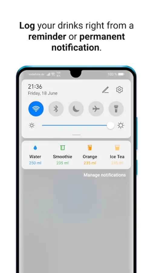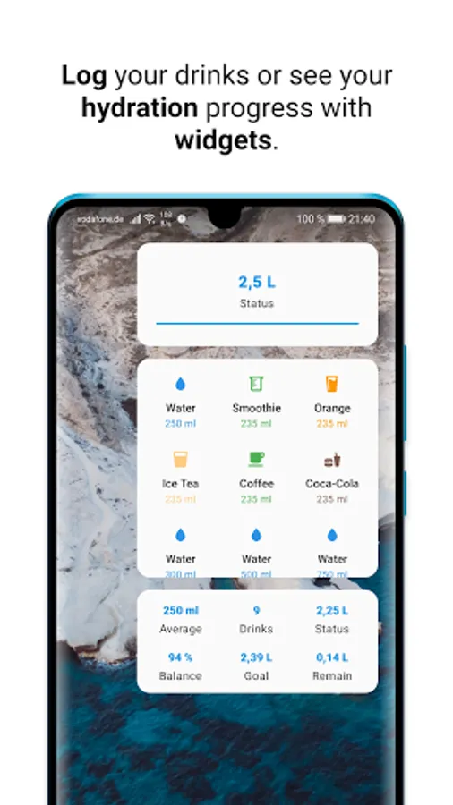 Easily log a beverage or keep track of your hydration progress from your home screen through widgets or from your notification center with rich notifications.