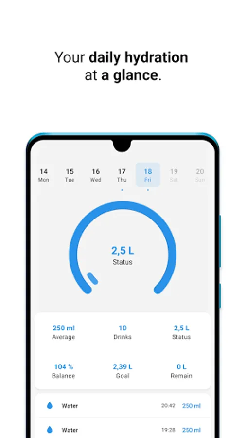 We calculate your daily hydration goal for you, ensuring you stay hydrated even if your environment or lifestyle changes.