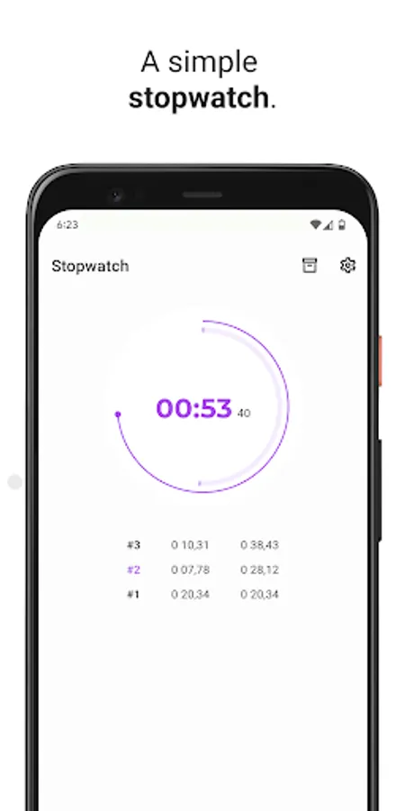 Saved stopwatches are enhanced with beautiful statistics and can be shared with other people.