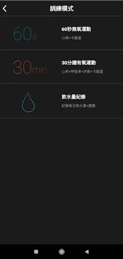 1. 訓練紀錄(30秒無氧運動與60秒有氧運度)+飲水量紀錄