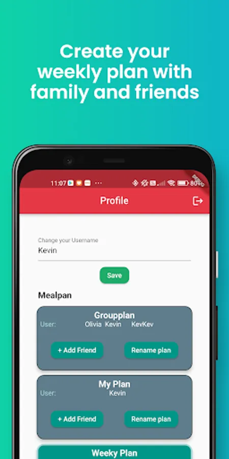 Share your meal plan with your friends and family with a simple button tap.