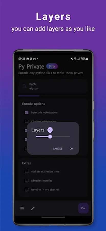 The application allows you to encrypt Python files with more than one type of encryption