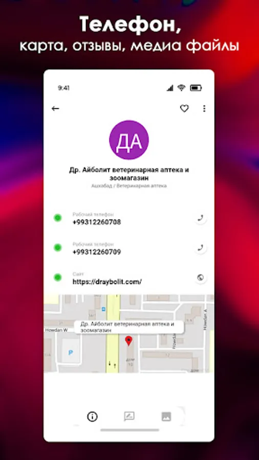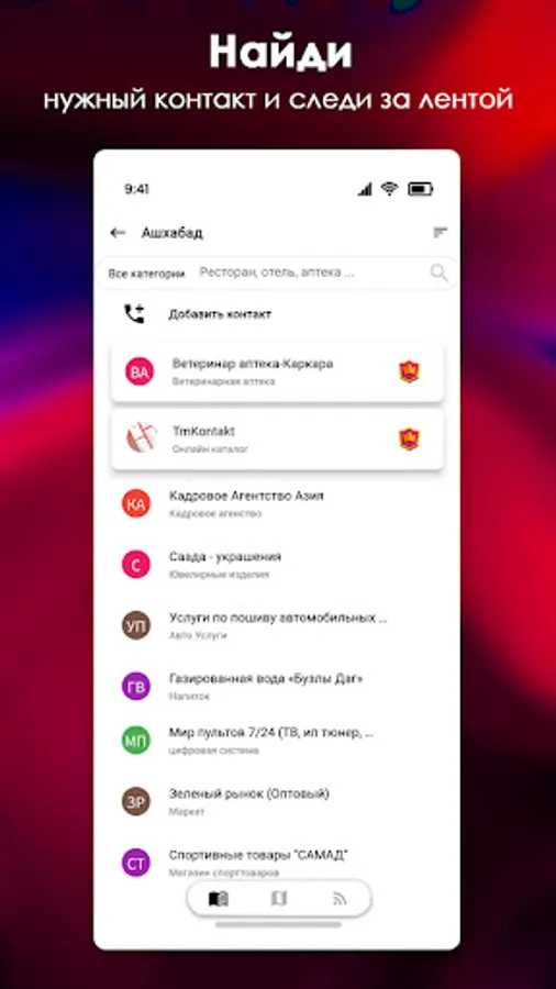 Türkmenistanyň ähli künjeklerindäki dermanhana, restoran, kafe, howa meňzili, demirýol, bank we beýleki dürli edaralaryň telefon belgileri elýeterli.