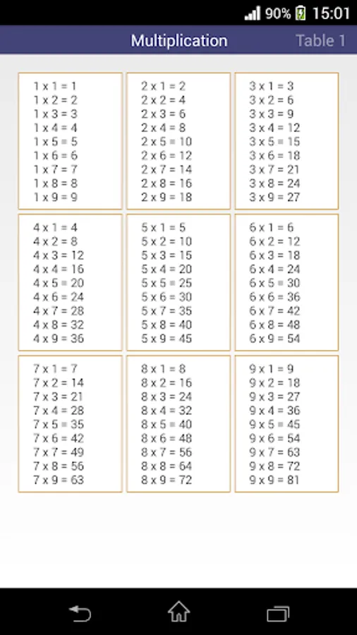 Multiplication Table Screenshots
