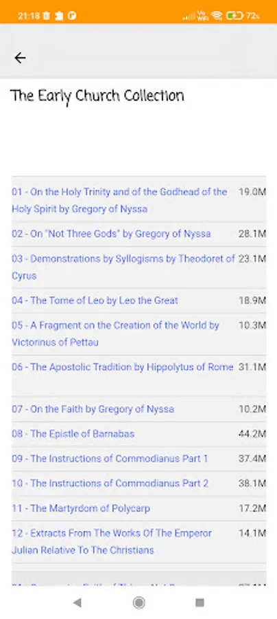 The collection begins with two short works on the Trinity by Gregory of Nyssa, followed by two works on Christology by Theodoret and Pope Leo I. Victorinus interprets Genesis 1 allegorically to justify certain early church practices and traces the number 7 through the whole Bible. Hippolytus lists various liturgical practices of the Roman church at the start of the 3rd century with potentially much earlier origins. In "On the Faith", Gregory of Nyssa defends the divinity of the Son of God and the Holy Spirit. The Epistle of Barnabas represents a 2nd or even 1st century example of the "parting of the ways" between early Christianity and Judaism. Commodianus' Instructions are a collection of 80 acrostic poems (not reflected in the translation) on various subjects, not least Christian responses to various Greek gods. The Martyrdom of Polycarp is one of the earliest of the church's martyrdom narratives and proved defining for the genre. The collection ends with Julian the Apostate's efforts to curtain Christianity in the Roman Empire subsequent to Constantine's conversion.