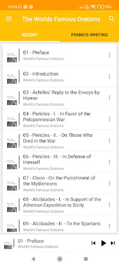 This is the first volume in the ten volume collection of the world's most famous orations, as compiled by William Jennings Bryant and Francis Whiting Halsey. The first volume concerns ancient Greece, and contains such famous persons as Achilles, Pericles, and Socrates, with their most famous (legendary or traditional) orations and speeches.
