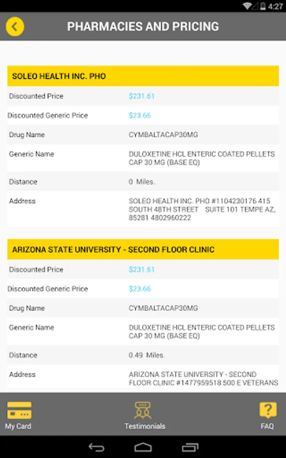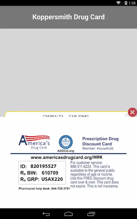 This free app sponsored by Mary Koppersmith will allow you to save an average of 15-55% on your prescription medications, look up prescription drug pricing, pharmacy locations and answer frequently asked questions.