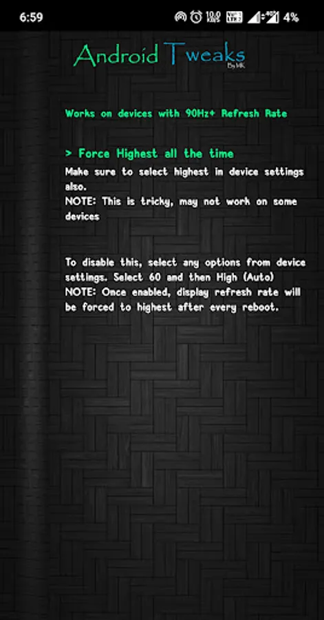 --Force Highest display Refresh Rate all the time