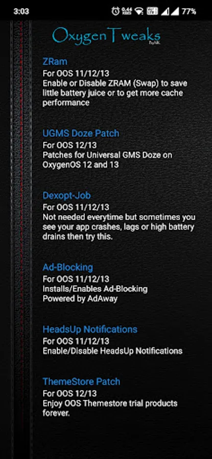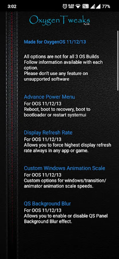 The app for making many useful options available easily in your device to make your OxygenOS device more friendly and handy with some shortcuts or say tweaks within one app together.