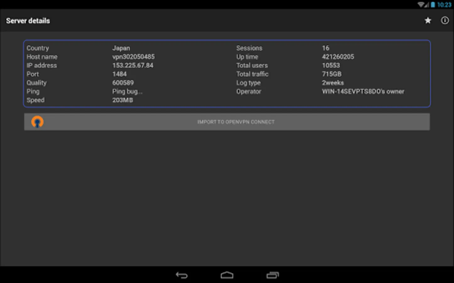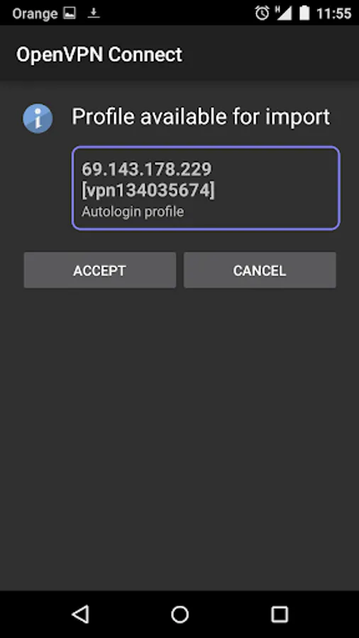 4. See server details and click "Import to OpenVPN Connect". Import screen will be started, click the "Accept" button
