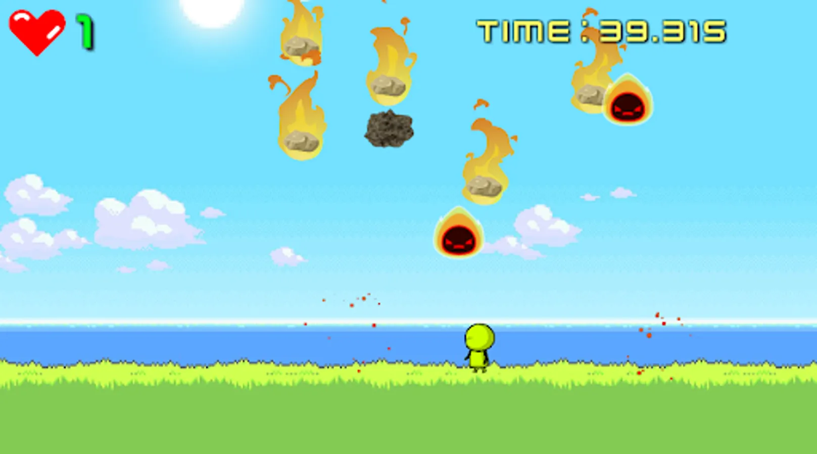 Survive for as long as possible while various objects fall from the sky. Longer you survive, speedier it gets.