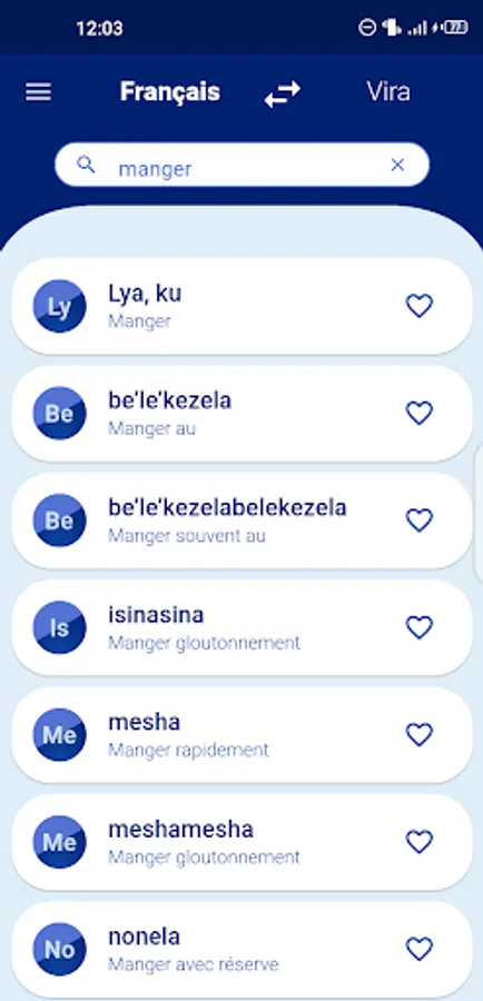 Version éléctronique protable du lexique Vira - Français. Avec plus de 14000 mots Vira ainsi que leurs traductions en Français