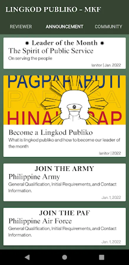 Lingkod Publiko - MKF created Lingkod AFP app to provide its users reviewers and to allow them easier access to information.