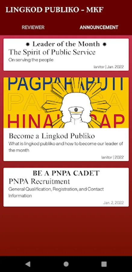 Lingkod PNPA app provides our users free reviewers and allows them easier access to information.