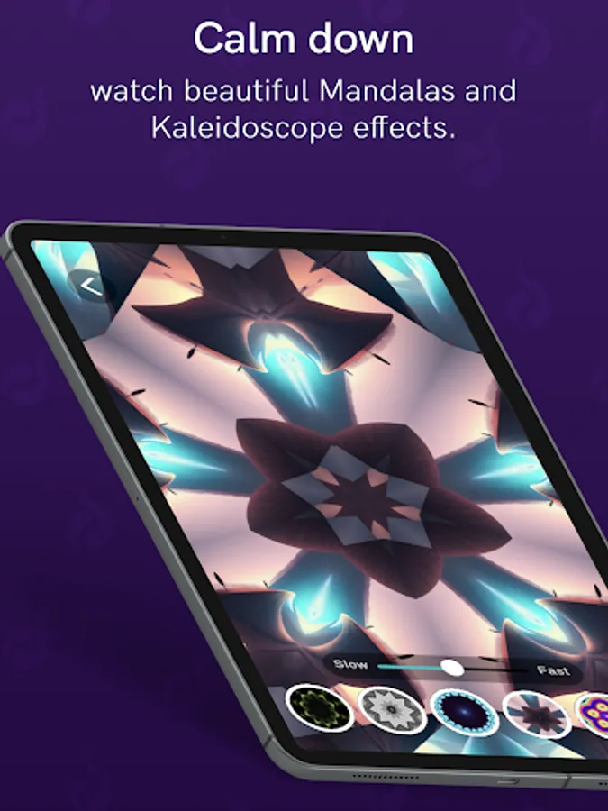 Watch & interact with kaleidoscopic effects, mandalas, particle generators, slime & fluid simulations. Listen to relaxing music, or create your own custom soothing soundscapes.